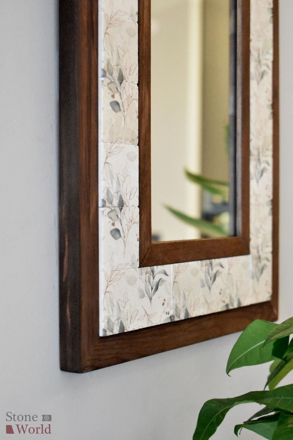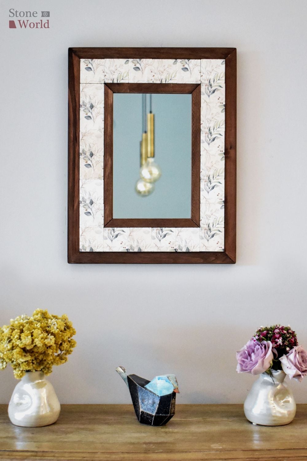 Çiçek Temalı, Masif Ahşap Ve Desenli Mermerden Dekoratif Ayna - 34x44cm - 024.1