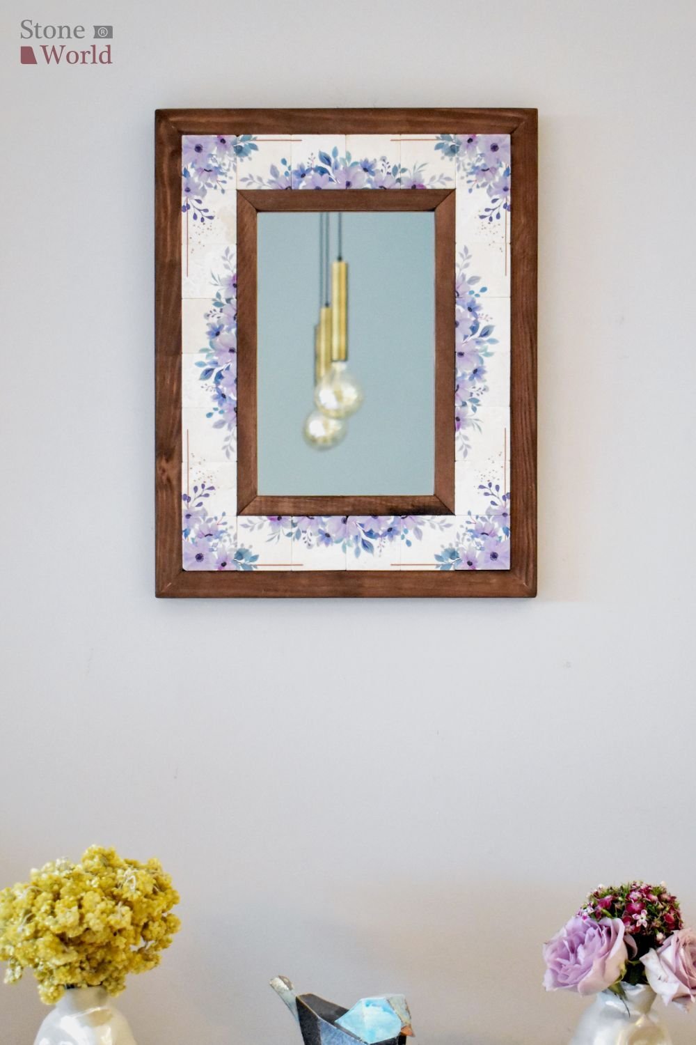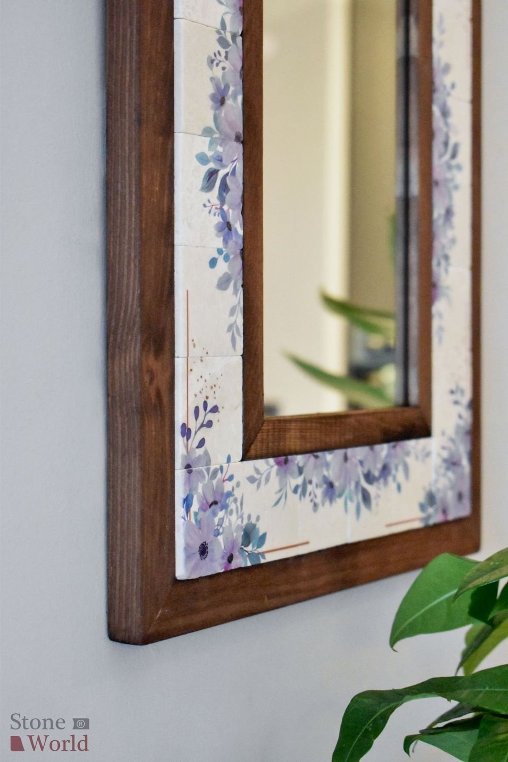 Çiçek Temalı, Masif Ahşap Ve Desenli Mermerden Dekoratif Ayna - 34x44cm - 066.2
