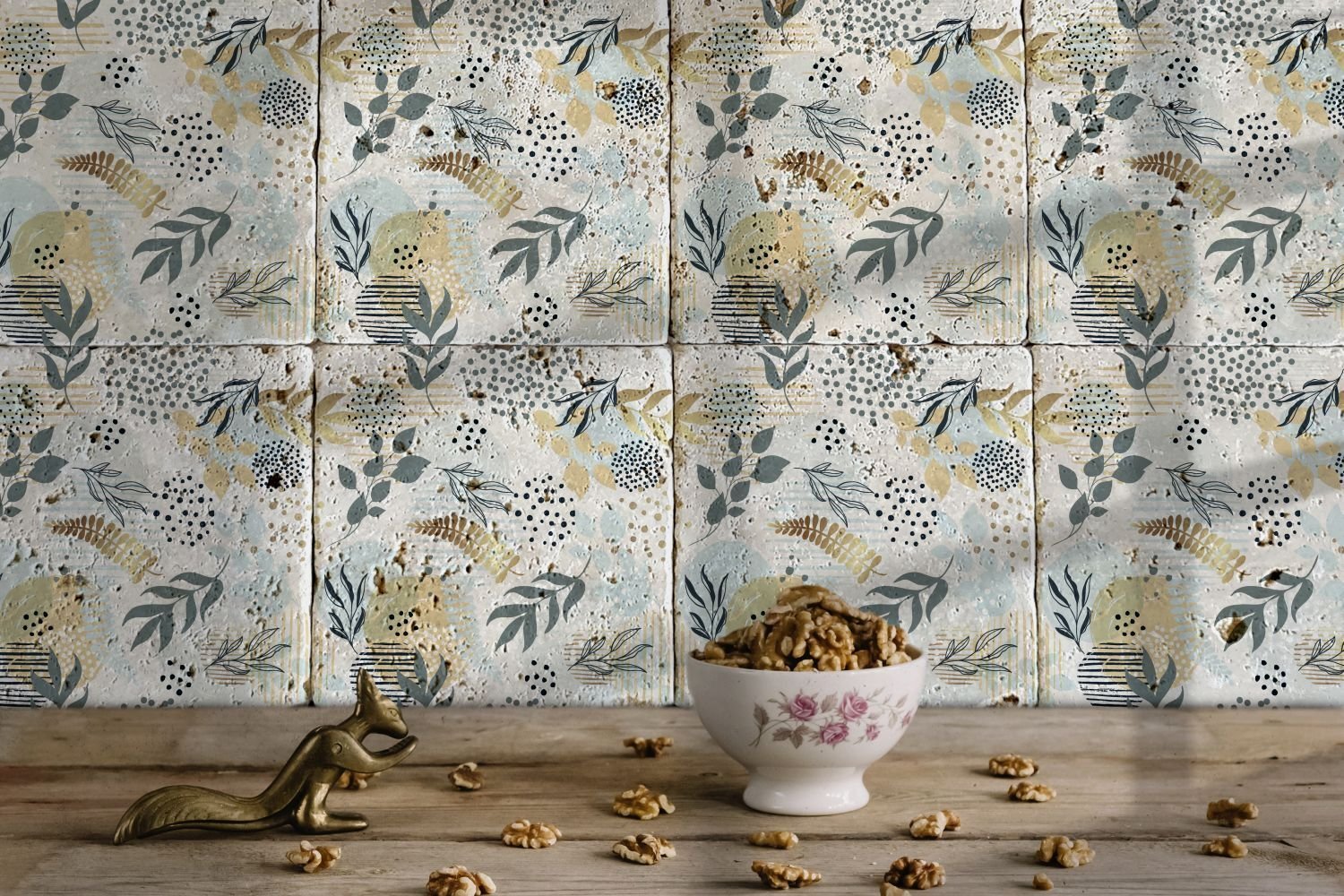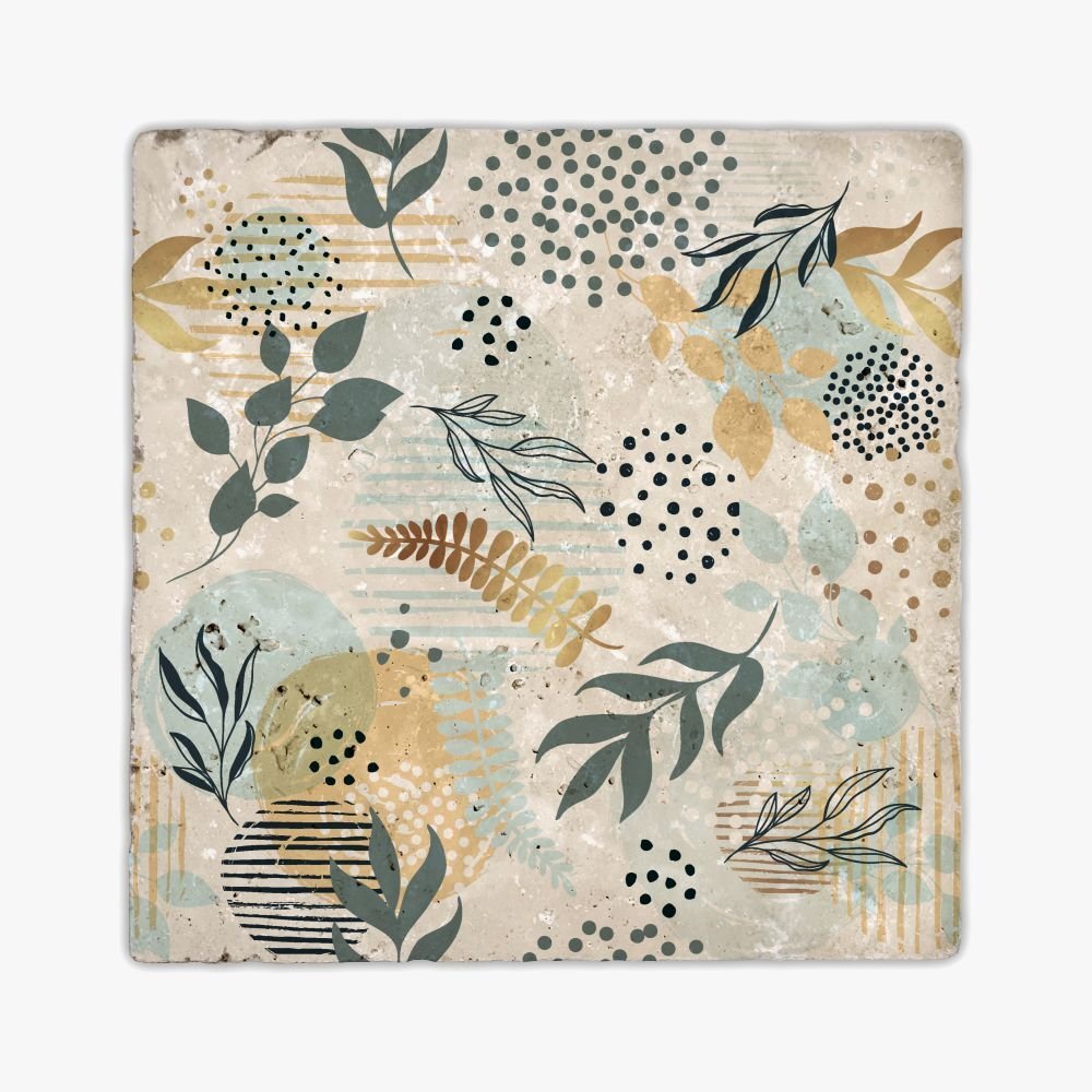 Desenli Doğal Taştan Dekoratif Karo - Flower Teması - 019