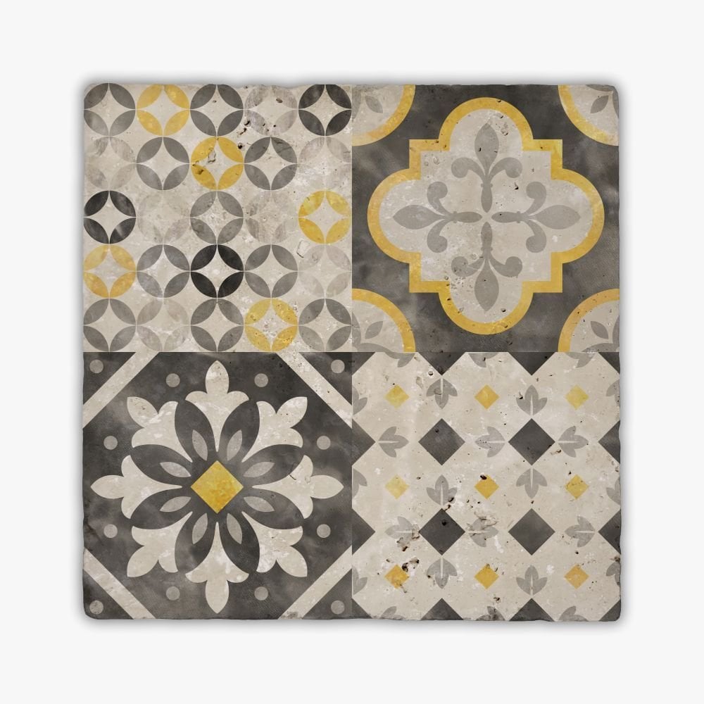 Her kutuda 5 adet desenli traverten karo