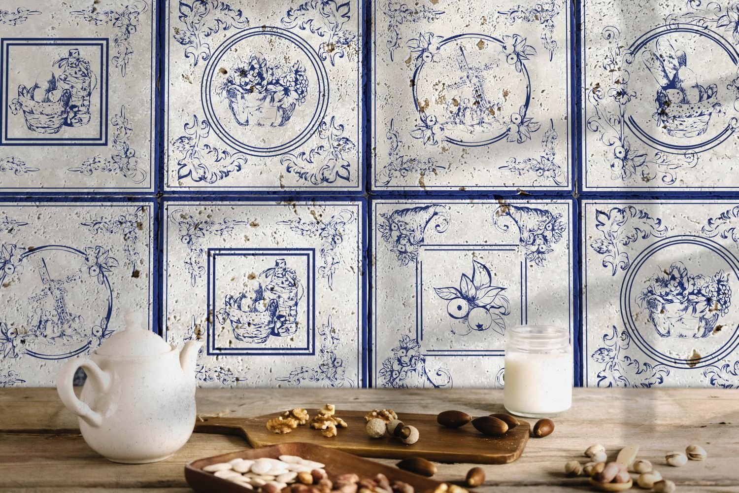 Desenli Doğal Taştan Dekoratif Karo - Quintet Teması - 002