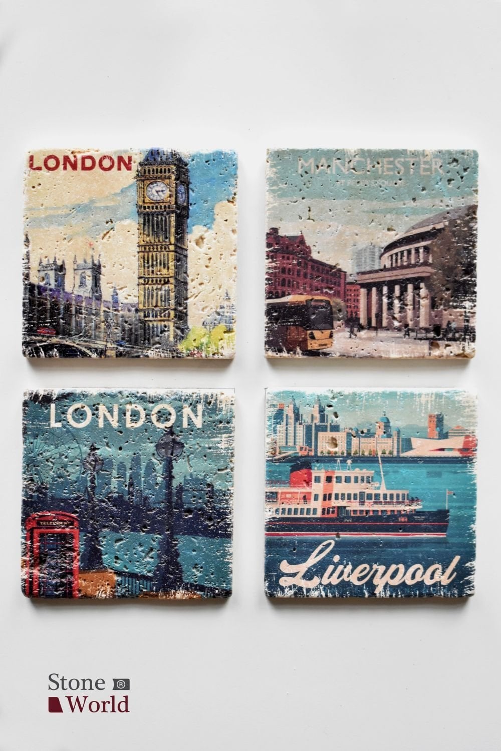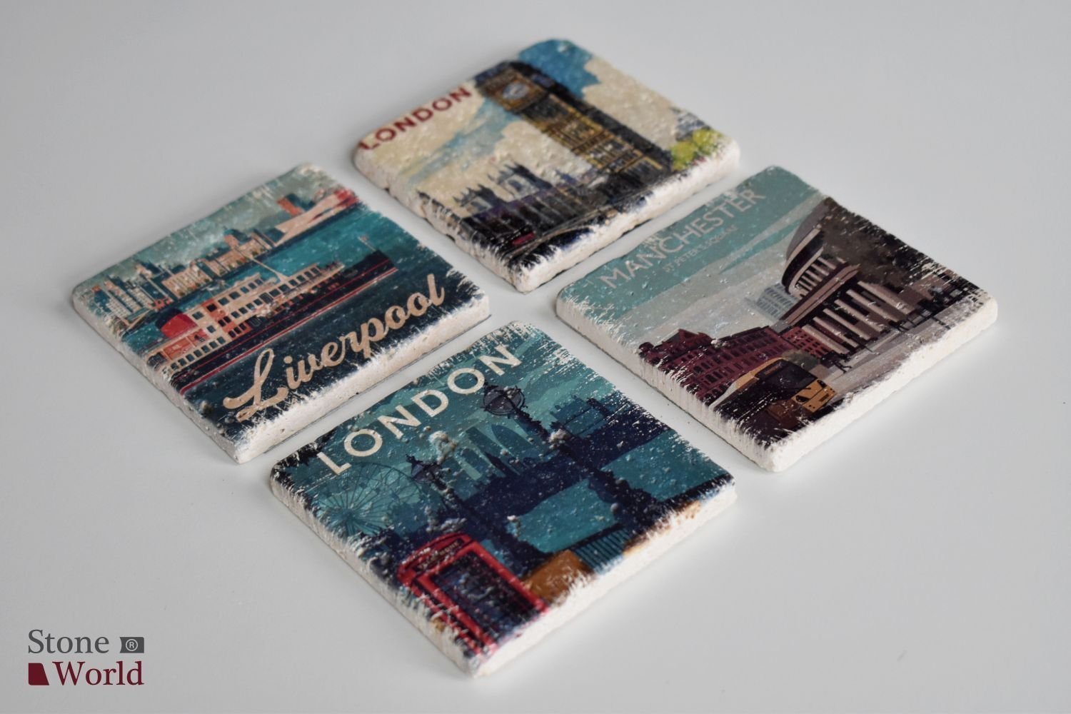 Doğal taş Bardak altlığı - 4'lü Takım - England - 008
