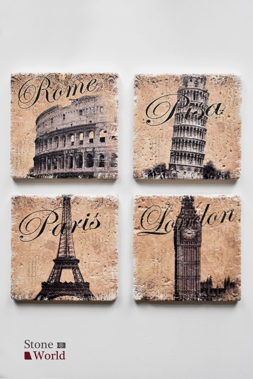 Doğal taş Bardak altlığı - 4'lü Takım - Europe - 007