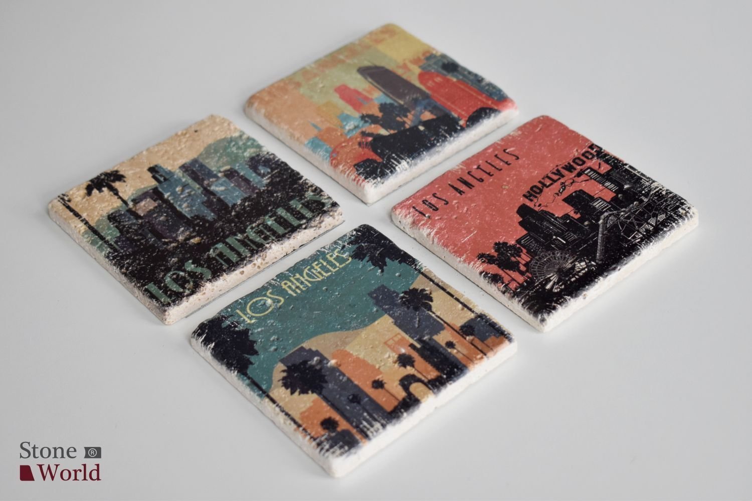 Doğal taş Bardak altlığı - 4'lü Takım - Los Angeles - 002