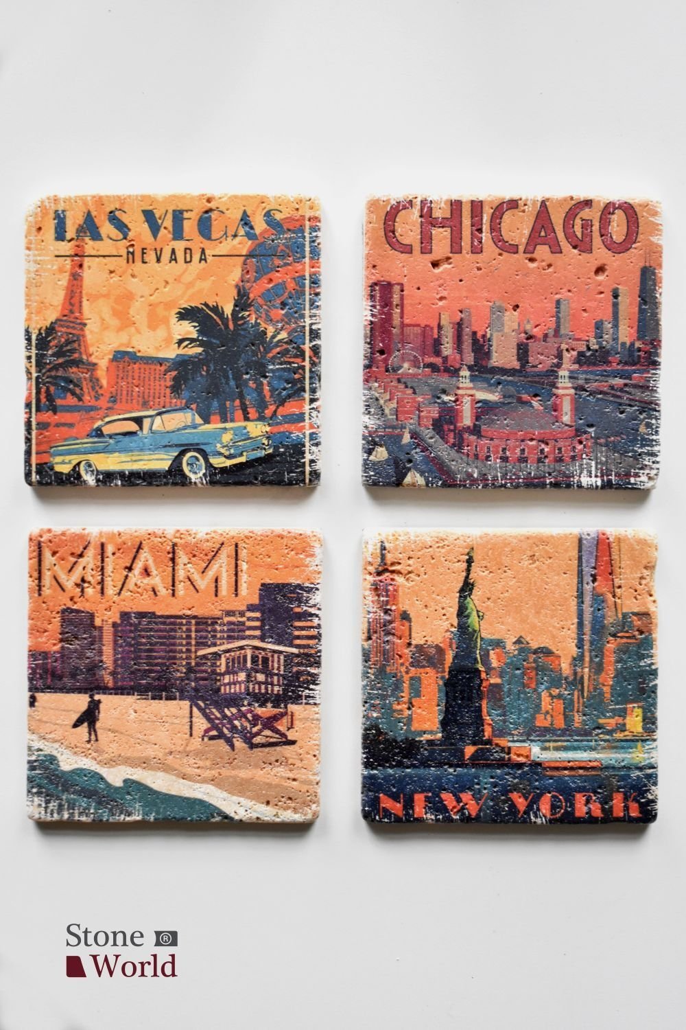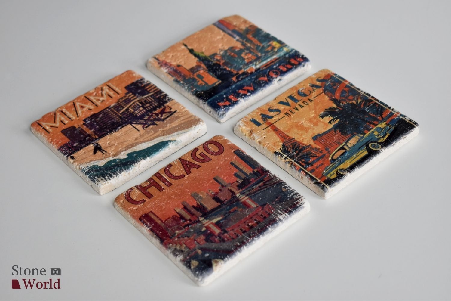 Doğal taş Bardak altlığı - 4'lü Takım - USA - 006