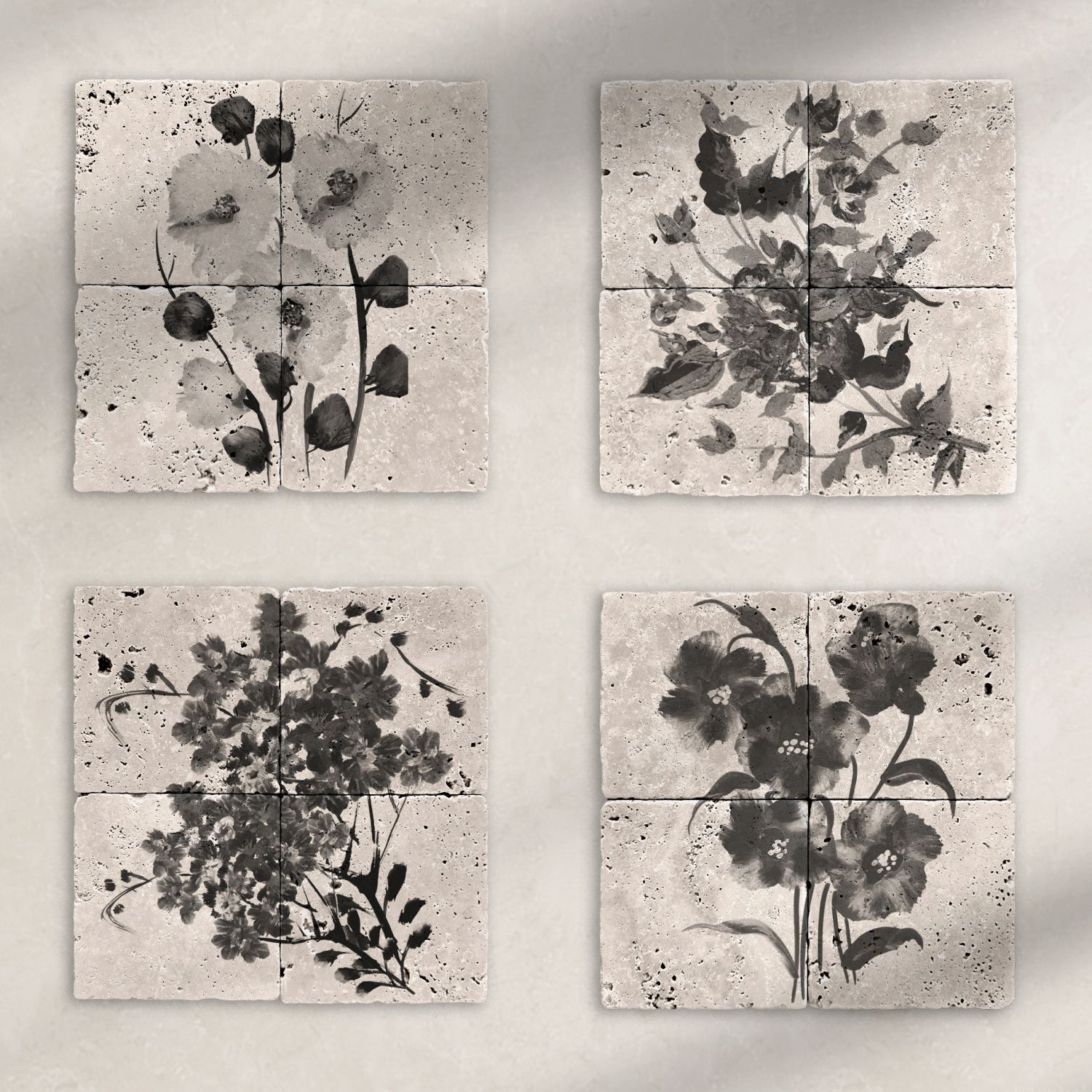 Duvar tabloları %100 doğal Traverten Taşından, el işçiliğiyle üretilmektedir. Eskitilmiş yüzeyi sayesinde her parça doğal taşın karakterini birebir yansıtır.