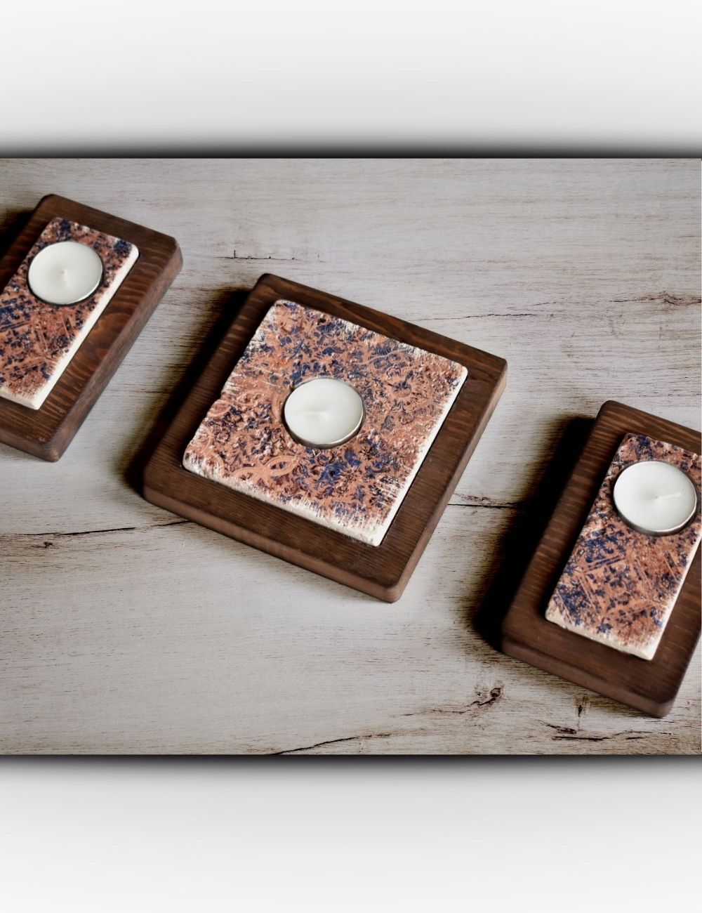 Doğal Taş ve Masif Ahşaptan Mumluk Seti - 029