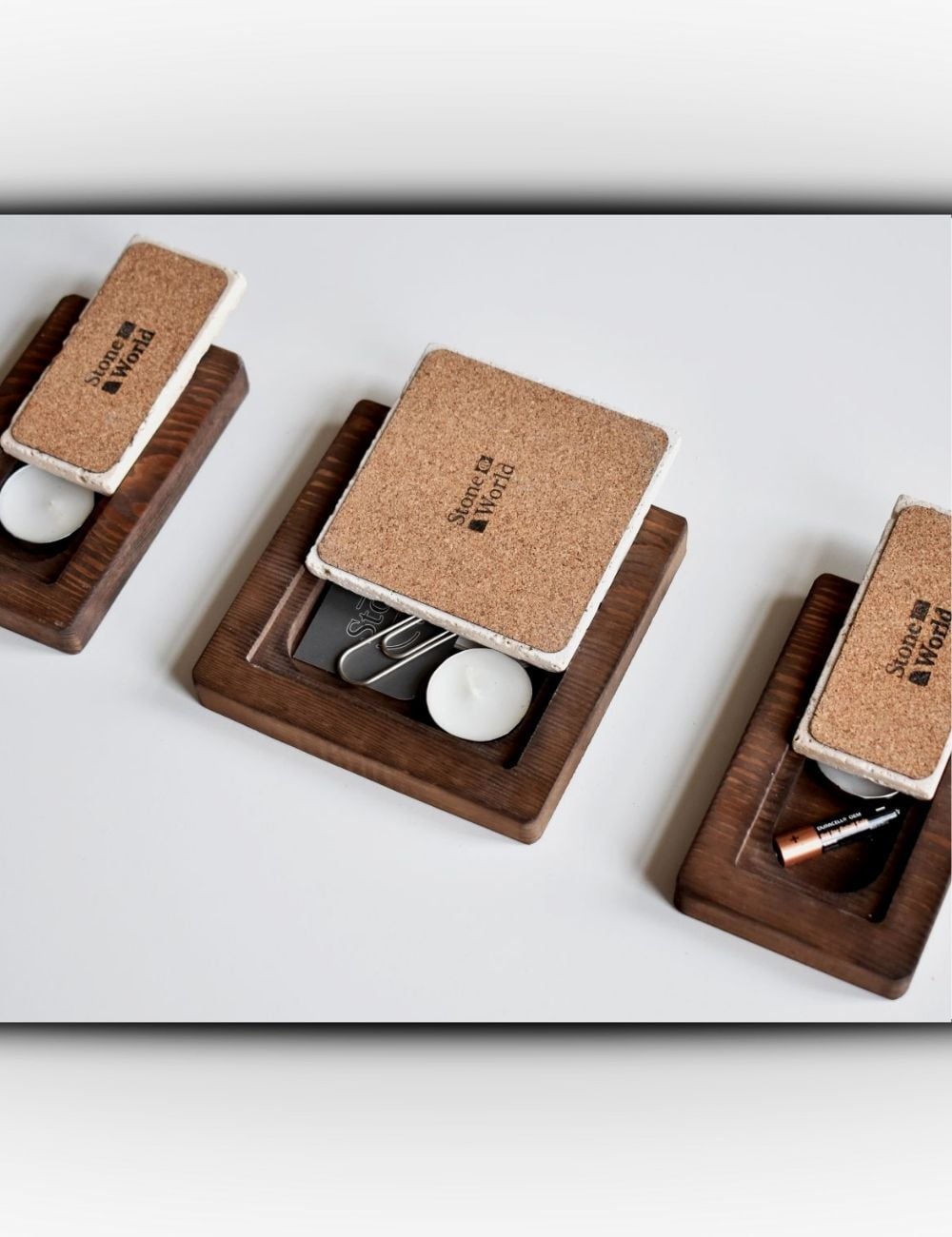 Ahşap altlıklar yedek mum saklama alanı olarak veya çok amaçlı dekoratif kullanım için değerlendirilebilir.