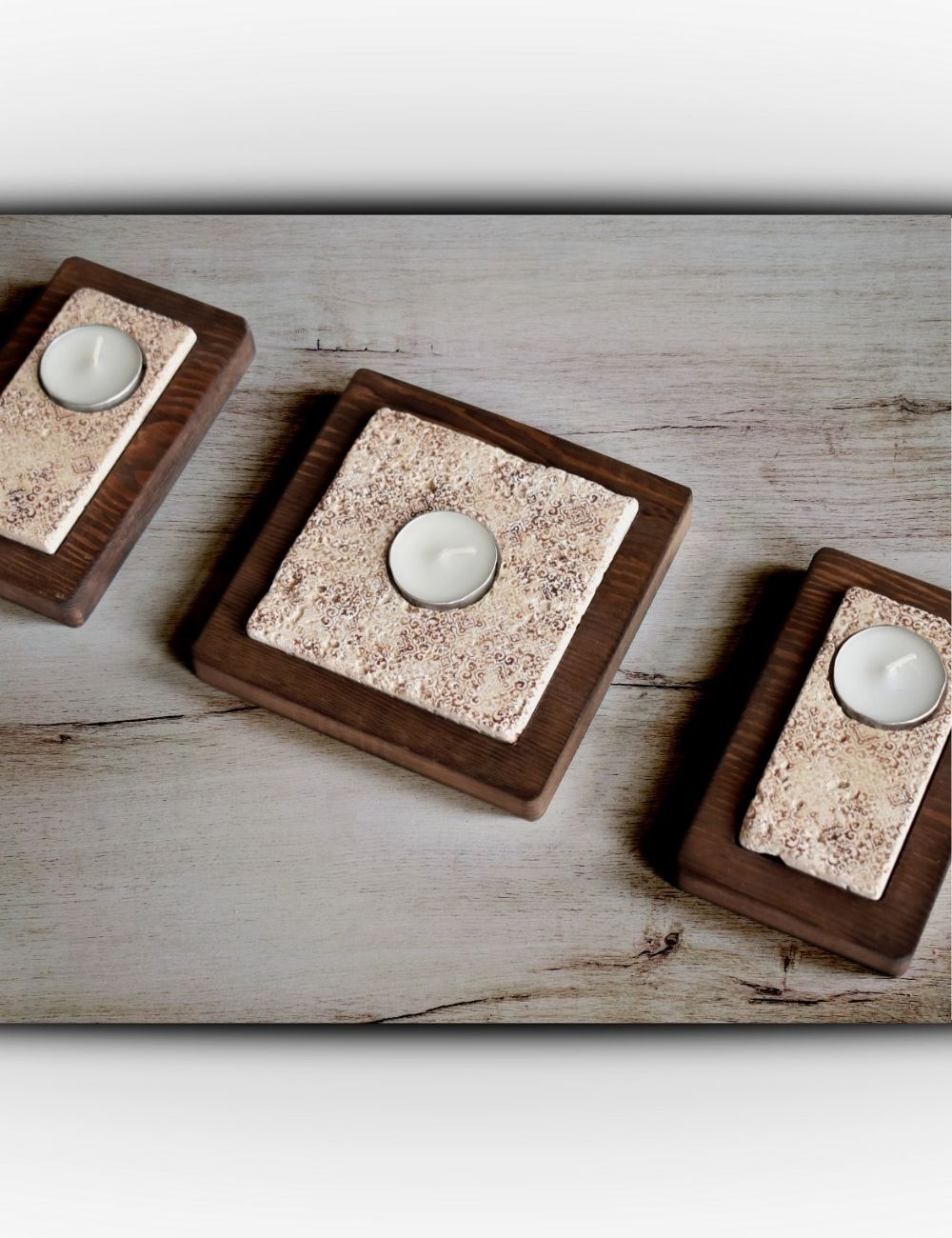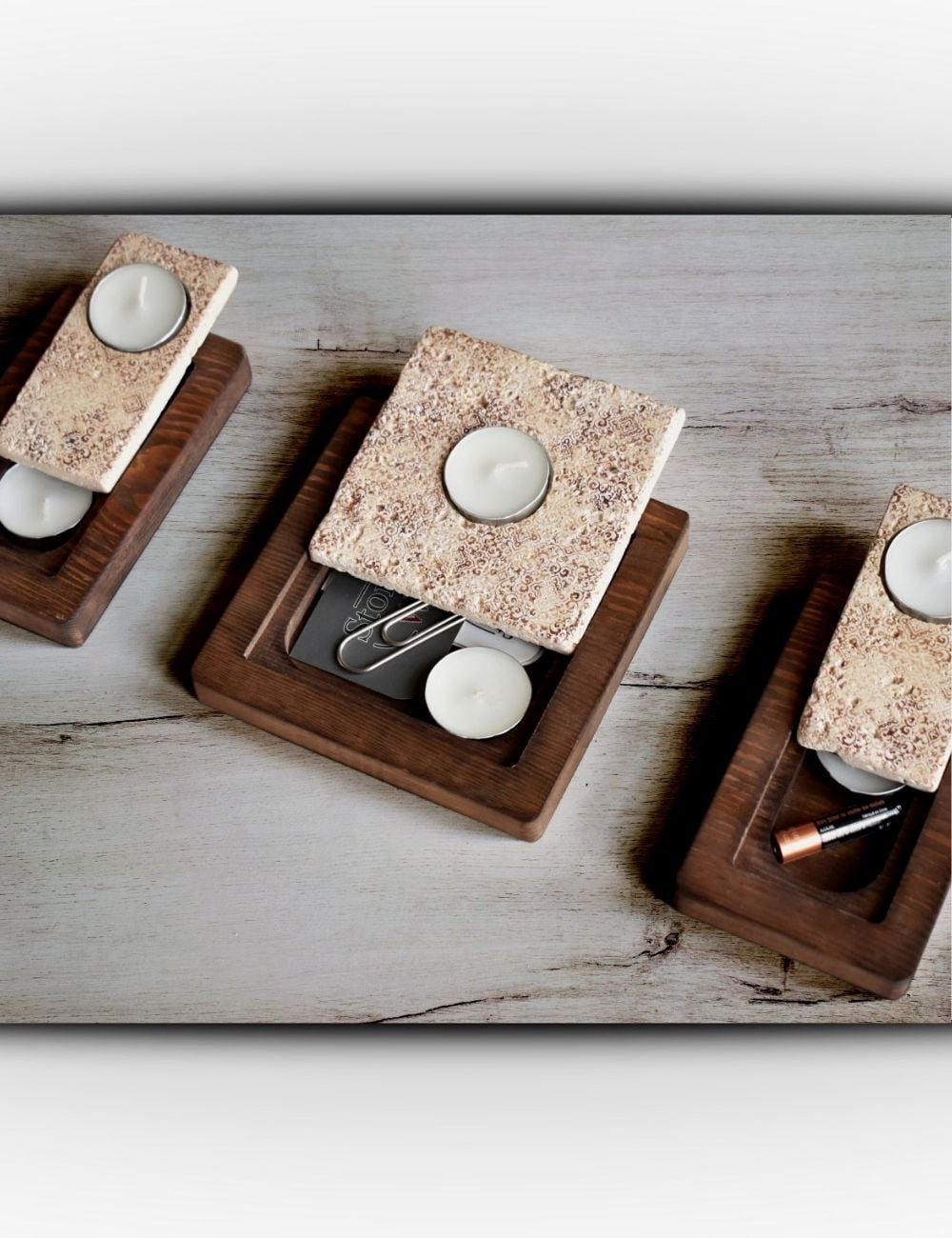 Doğal Taş ve Masif Ahşaptan Mumluk Seti - 034