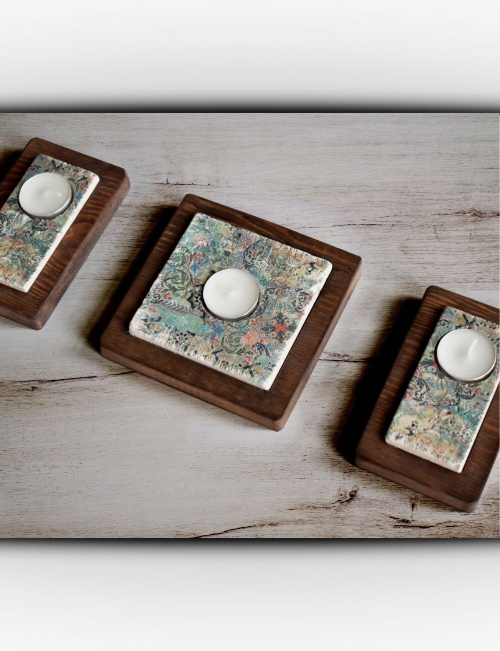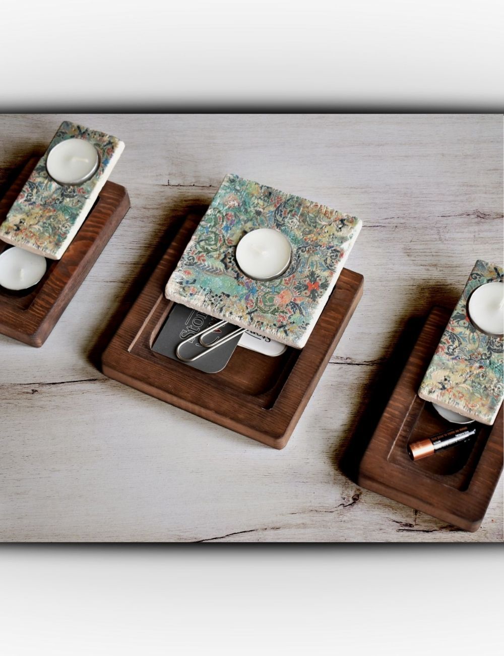 Ahşap altlıklar yedek mum saklama alanı olarak veya çok amaçlı dekoratif kullanım için değerlendirilebilir.