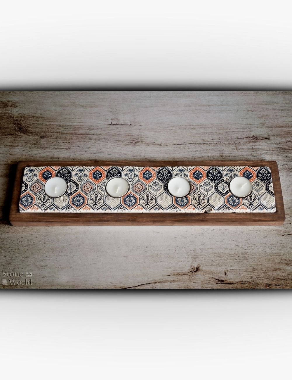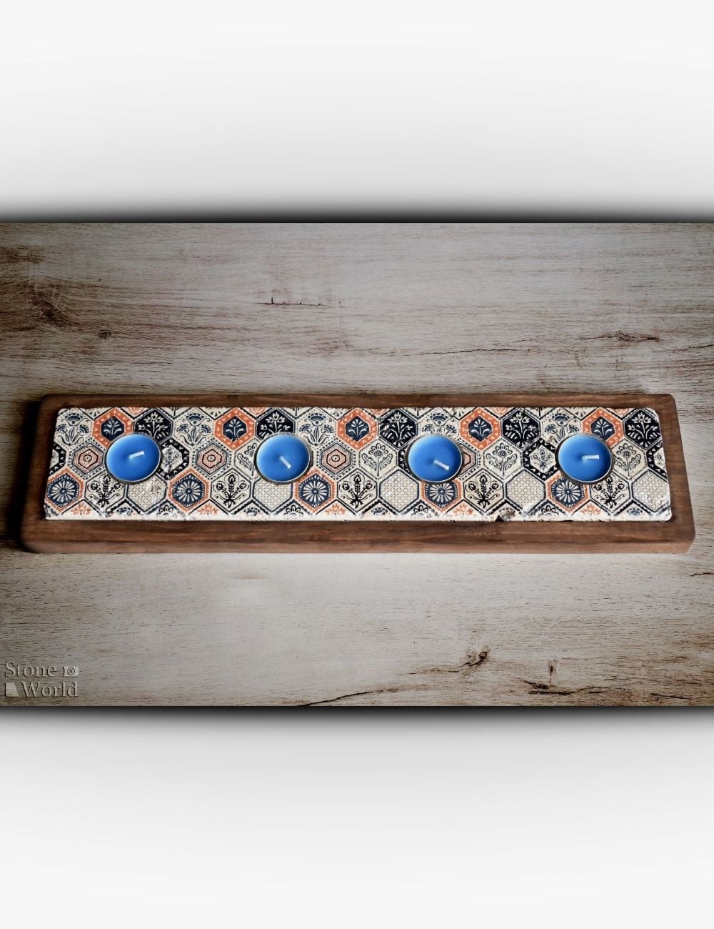 Doğal Taş ve Masif Ahşaptan Mumluk Takımı - 009