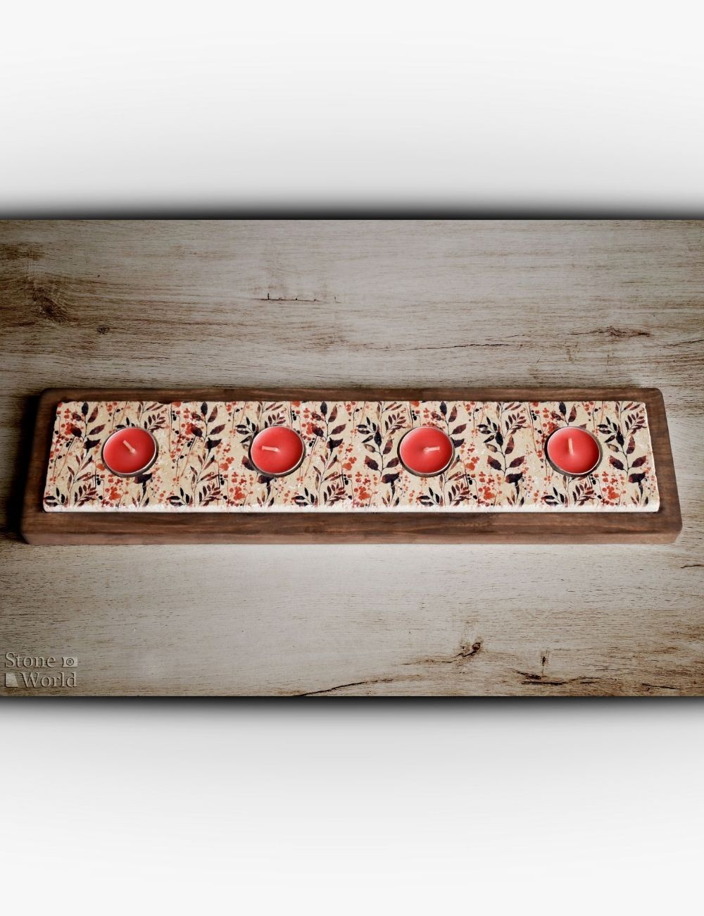Bu mumluk takımı %100 doğal traverten taş ve fırınlanmış masif ahşap kullanılarak üretilmiştir. Doğal taşın karakteri ile ahşabın sıcak dokusu bir araya gelerek dengeli ve eşsiz bir tasarım sunar.