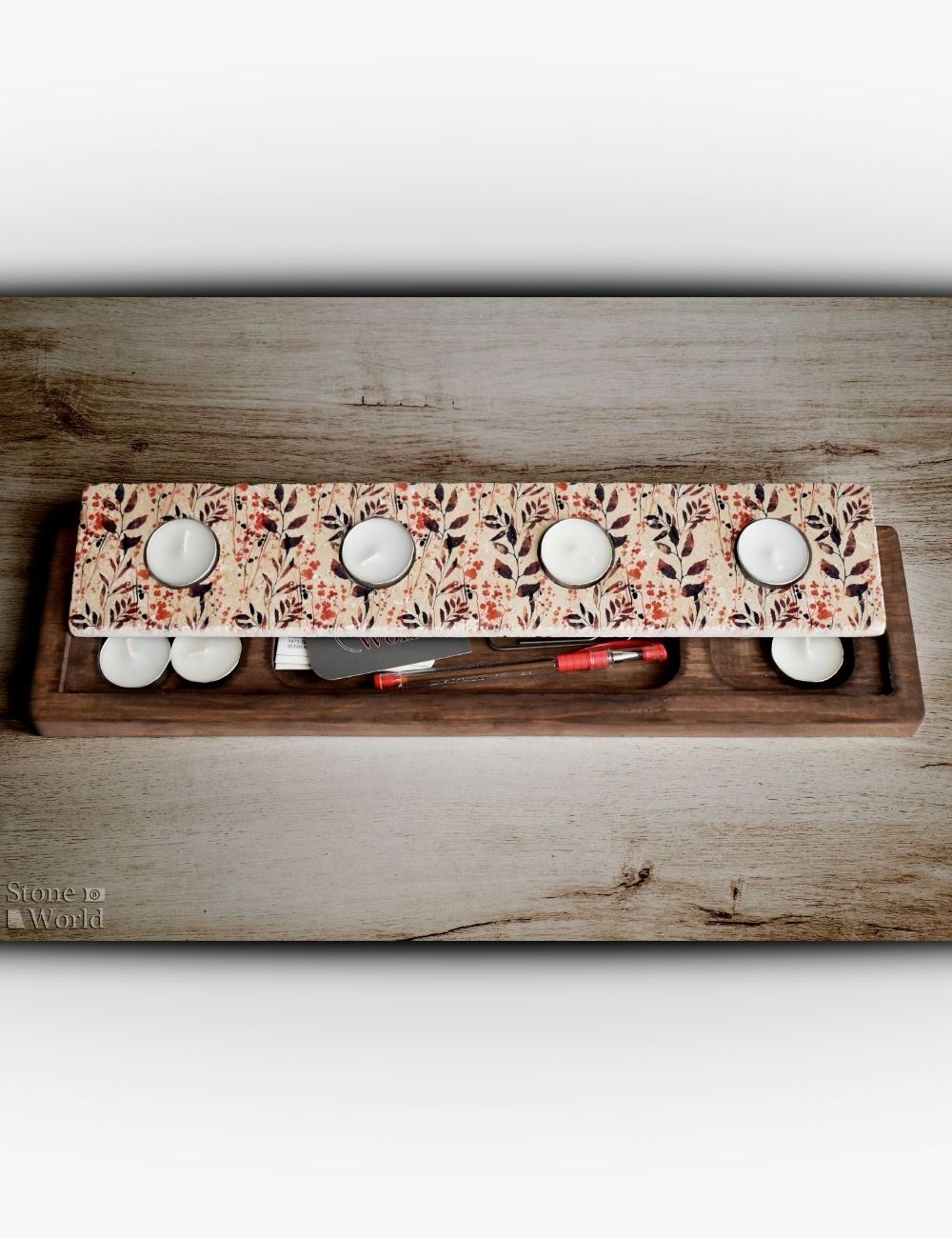 Ahşap altlıklar yedek mum saklama alanı olarak veya çok amaçlı dekoratif kullanım için değerlendirilebilir.