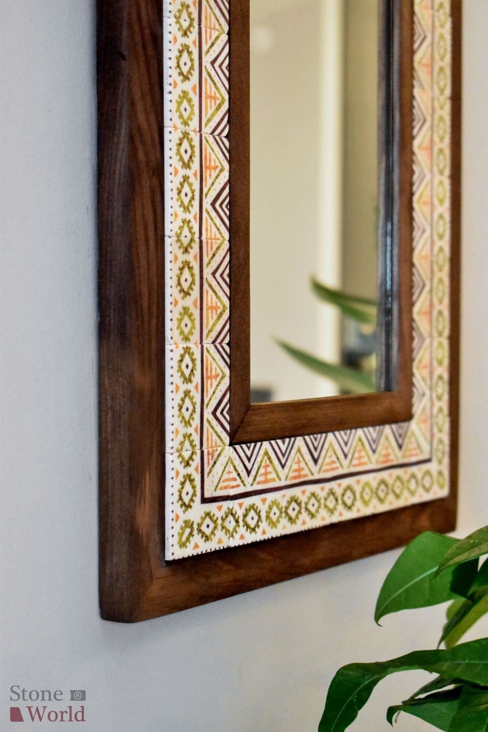 Etnik Temalı, Masif Ahşap Ve Desenli Mermerden Dekoratif Ayna - 34x44cm - 008.1