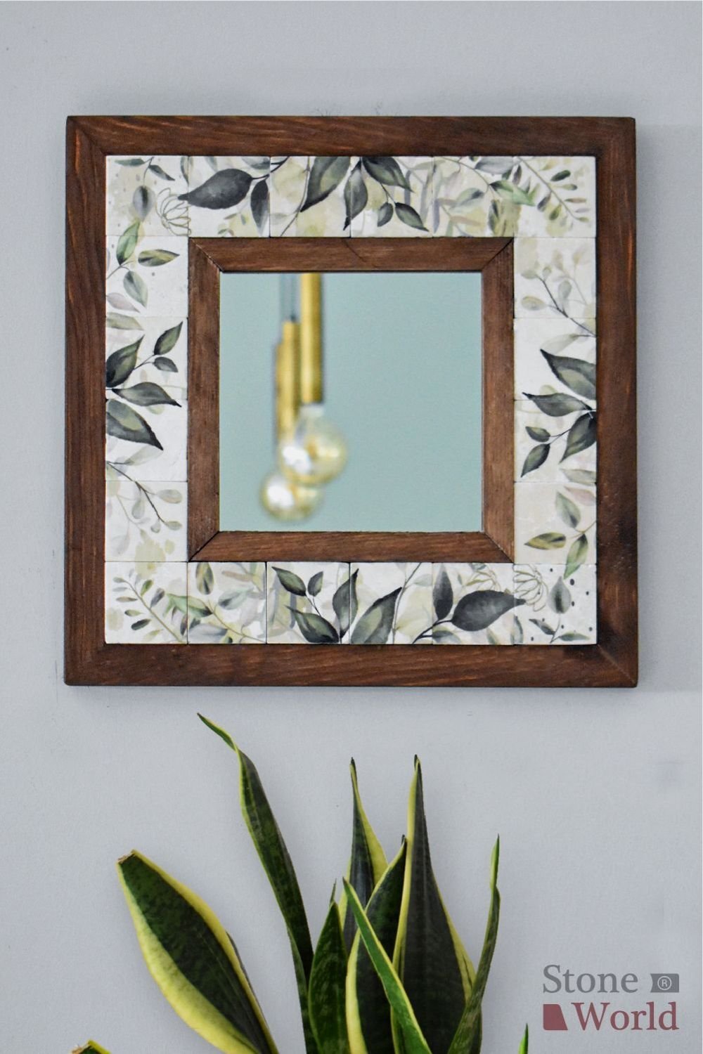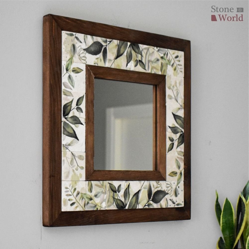 Flower Desenli Mermer Dekoratif Ayna 34x34cm - 065.1