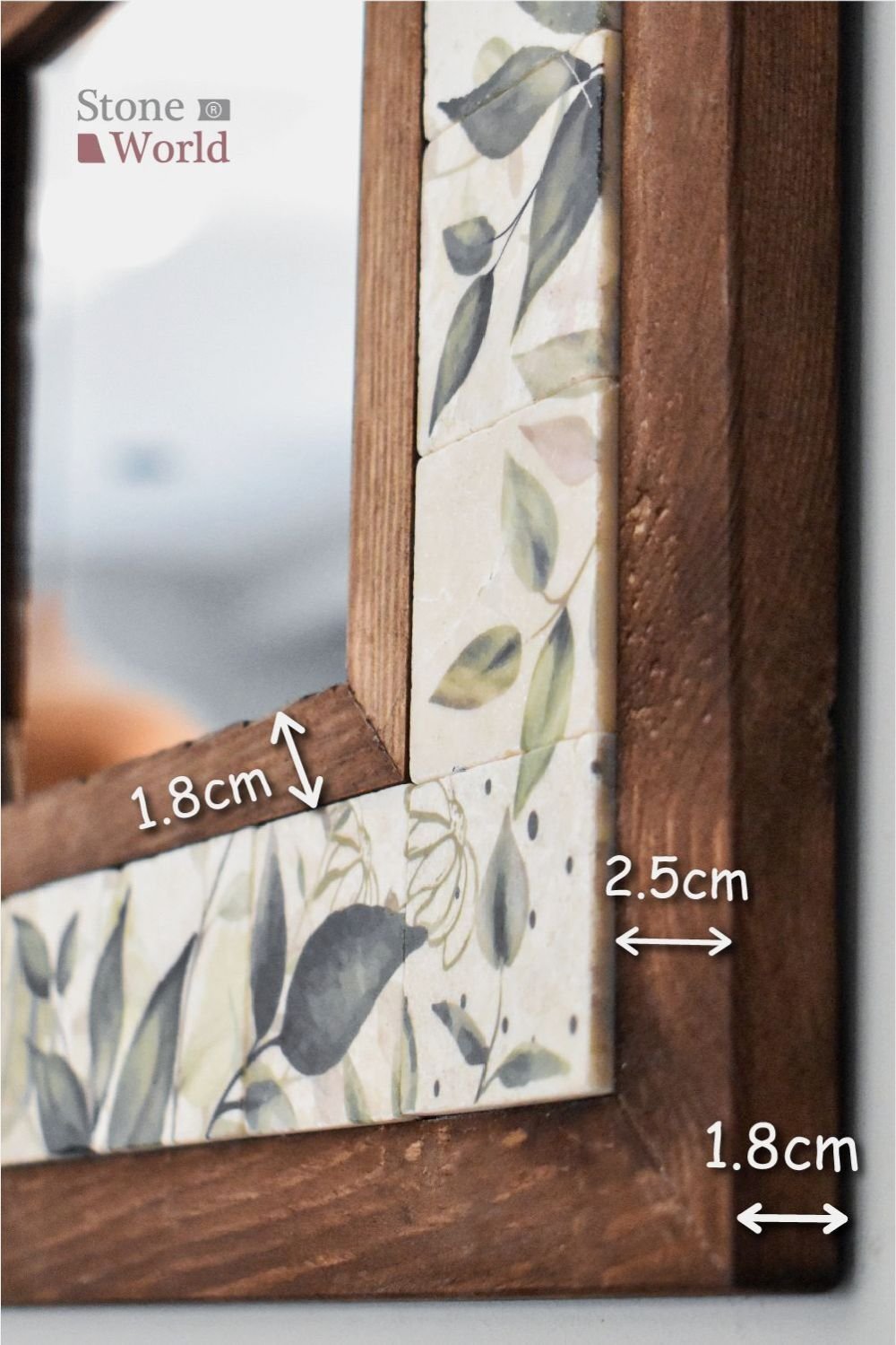 El yapımı masif ahşap ve doğal mermerden üretilen bu dekoratif duvar aynası, yaşam alanınıza zarif ve doğal bir dokunuş katar.