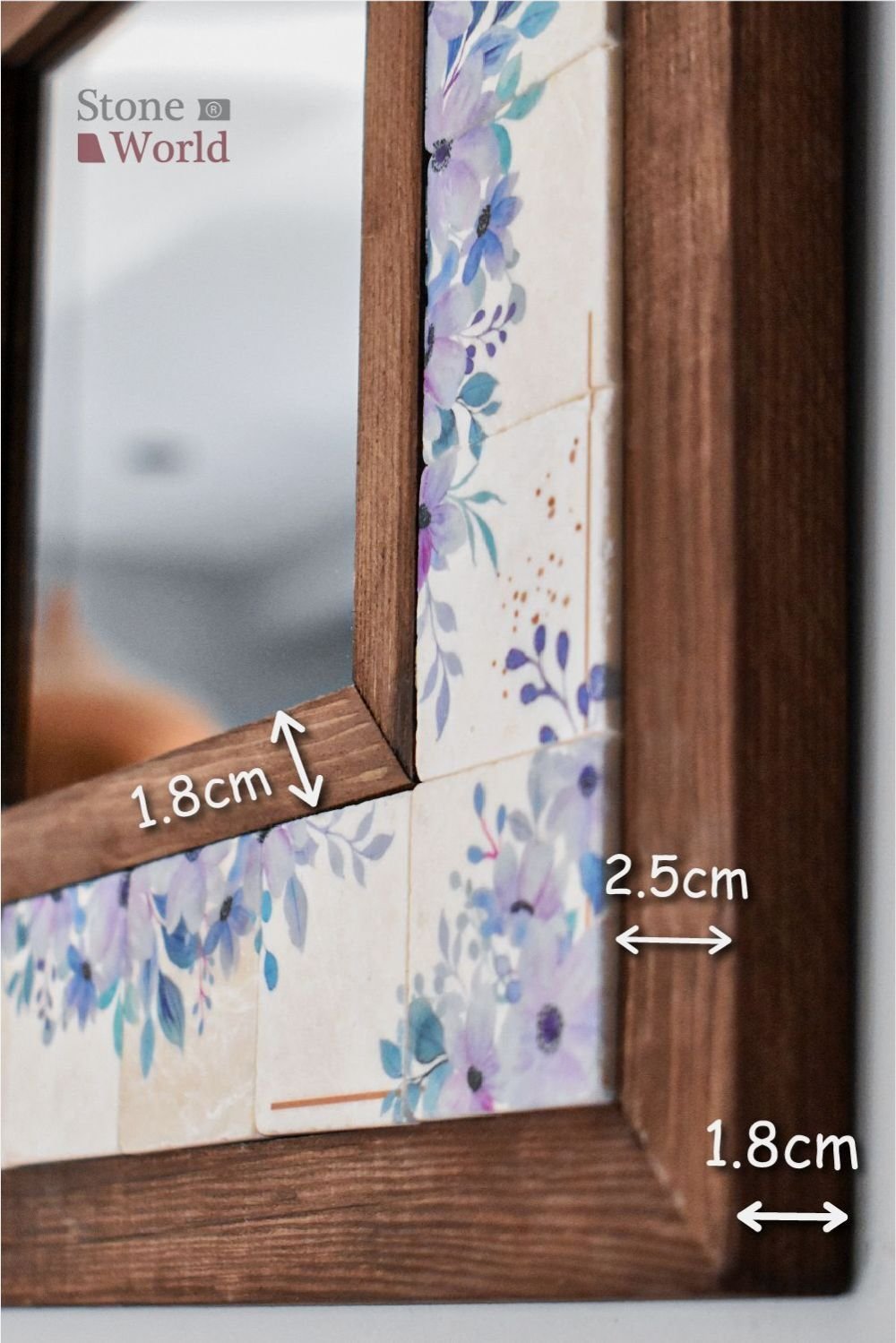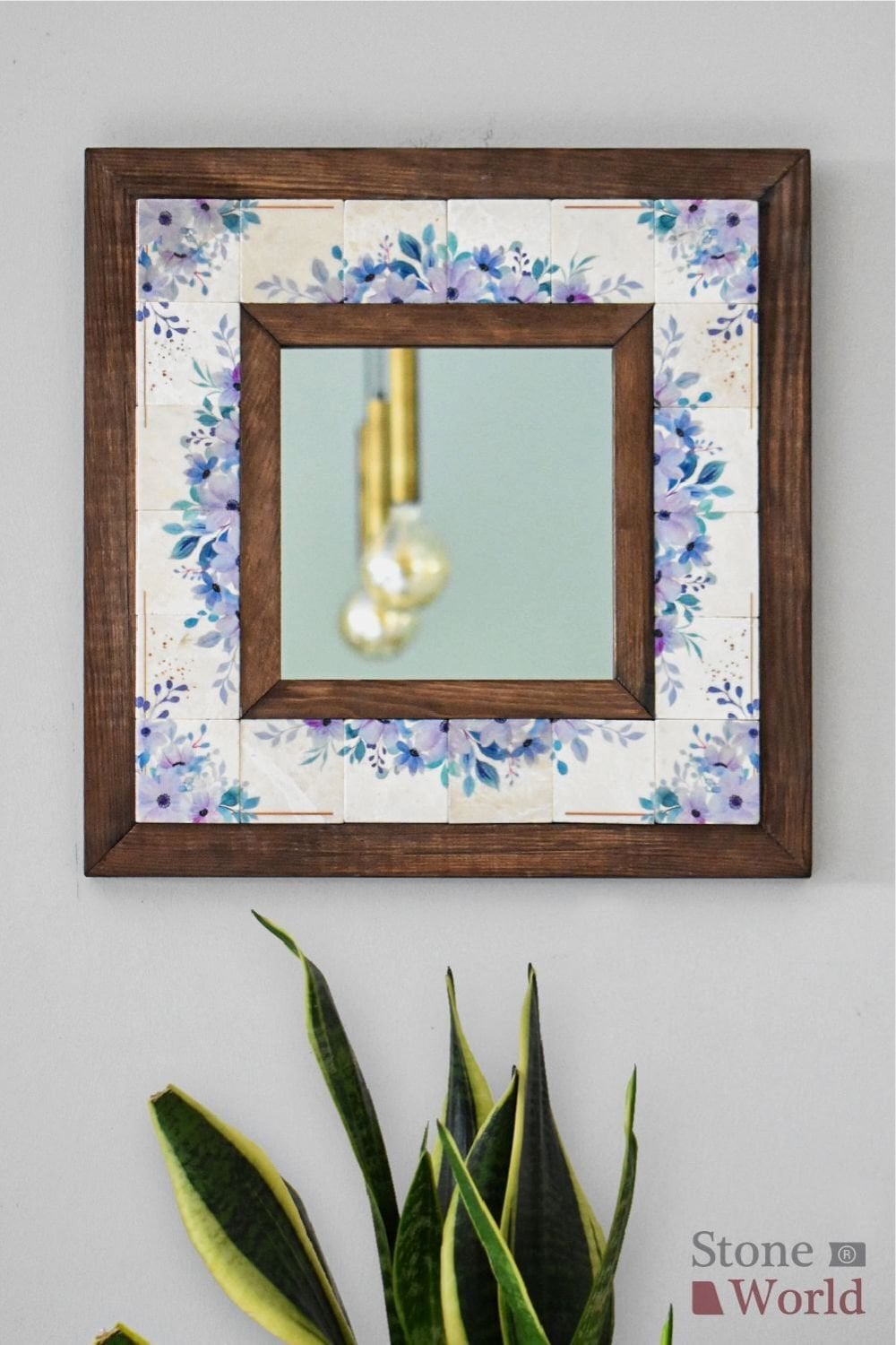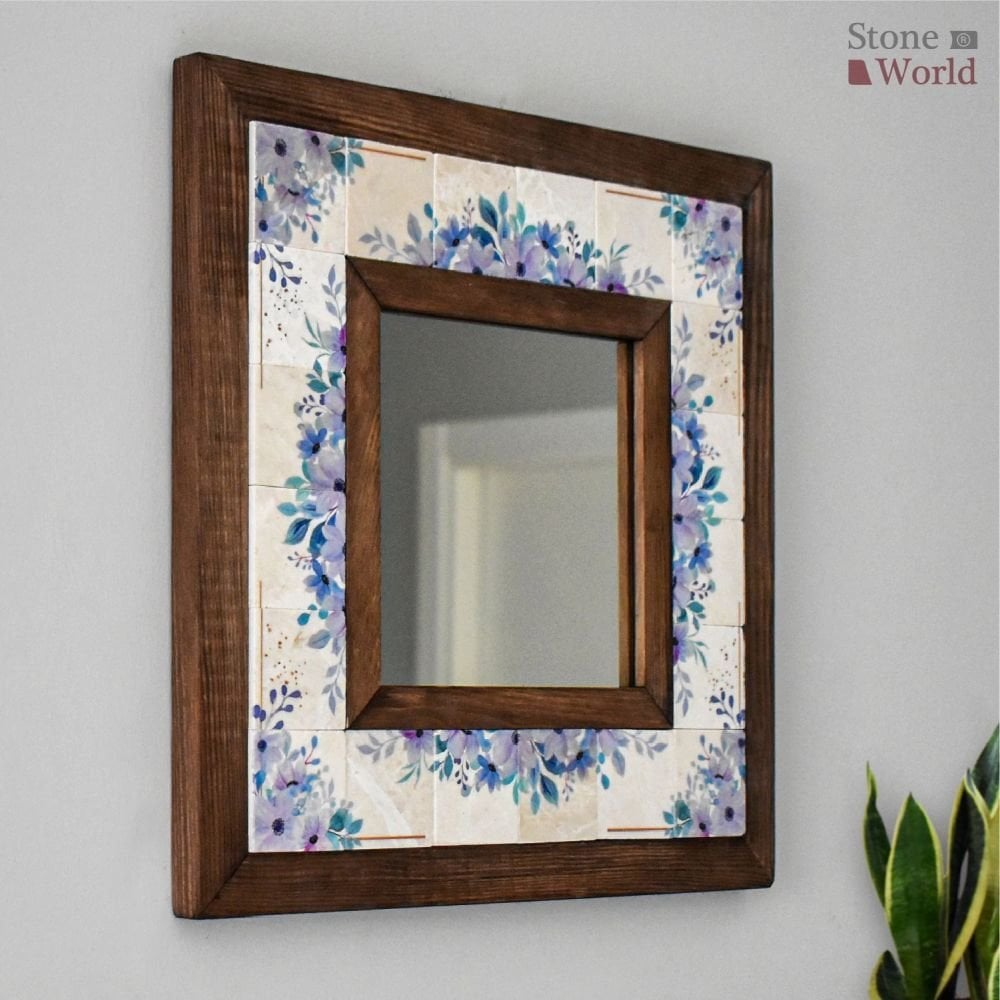 Flower Desenli Mermer Dekoratif Ayna 34x34cm - 066.2