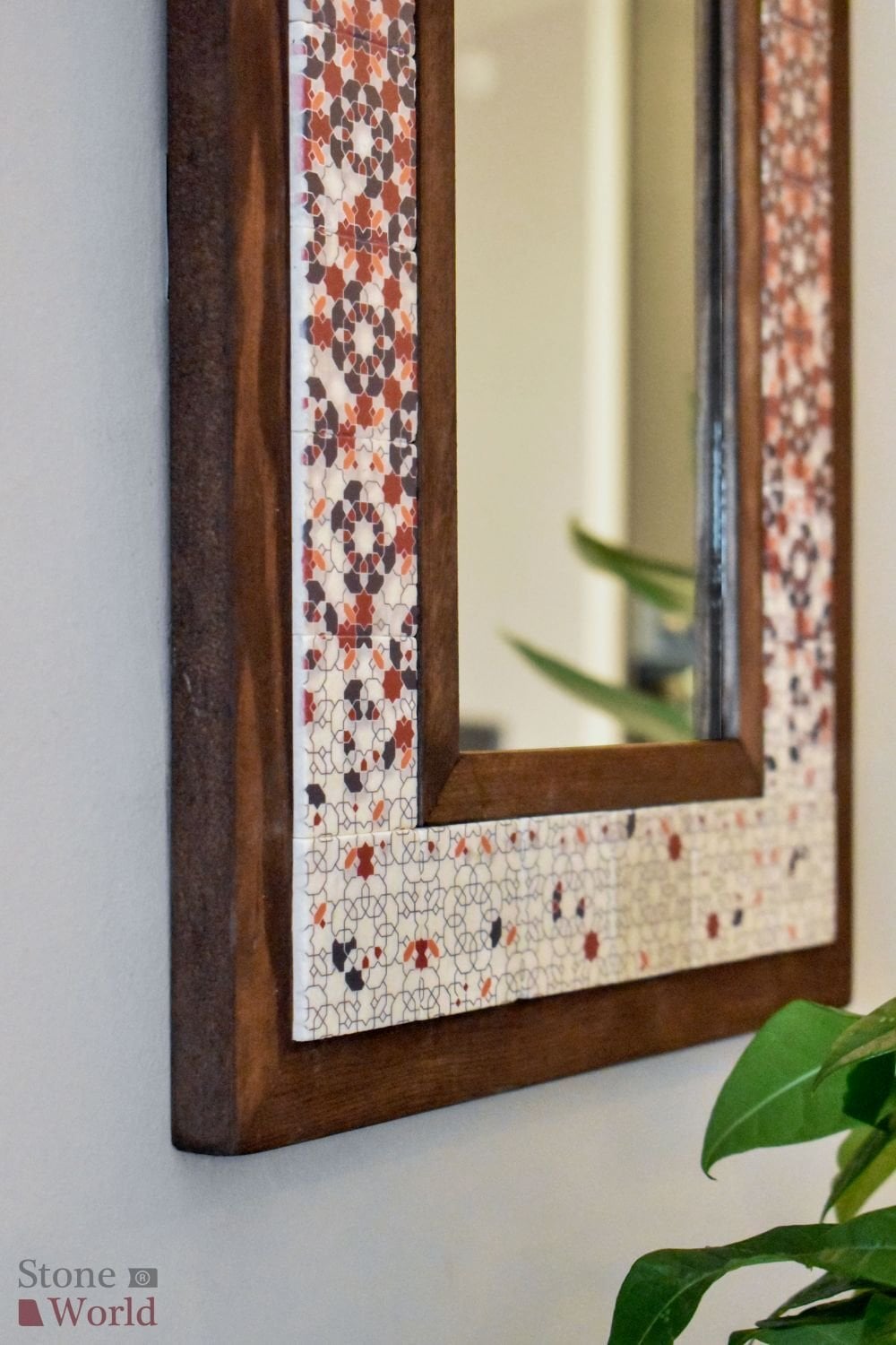 Geometrik Temalı, Masif Ahşap Ve Desenli Mermerden Dekoratif Ayna - 34x44cm - 042.2