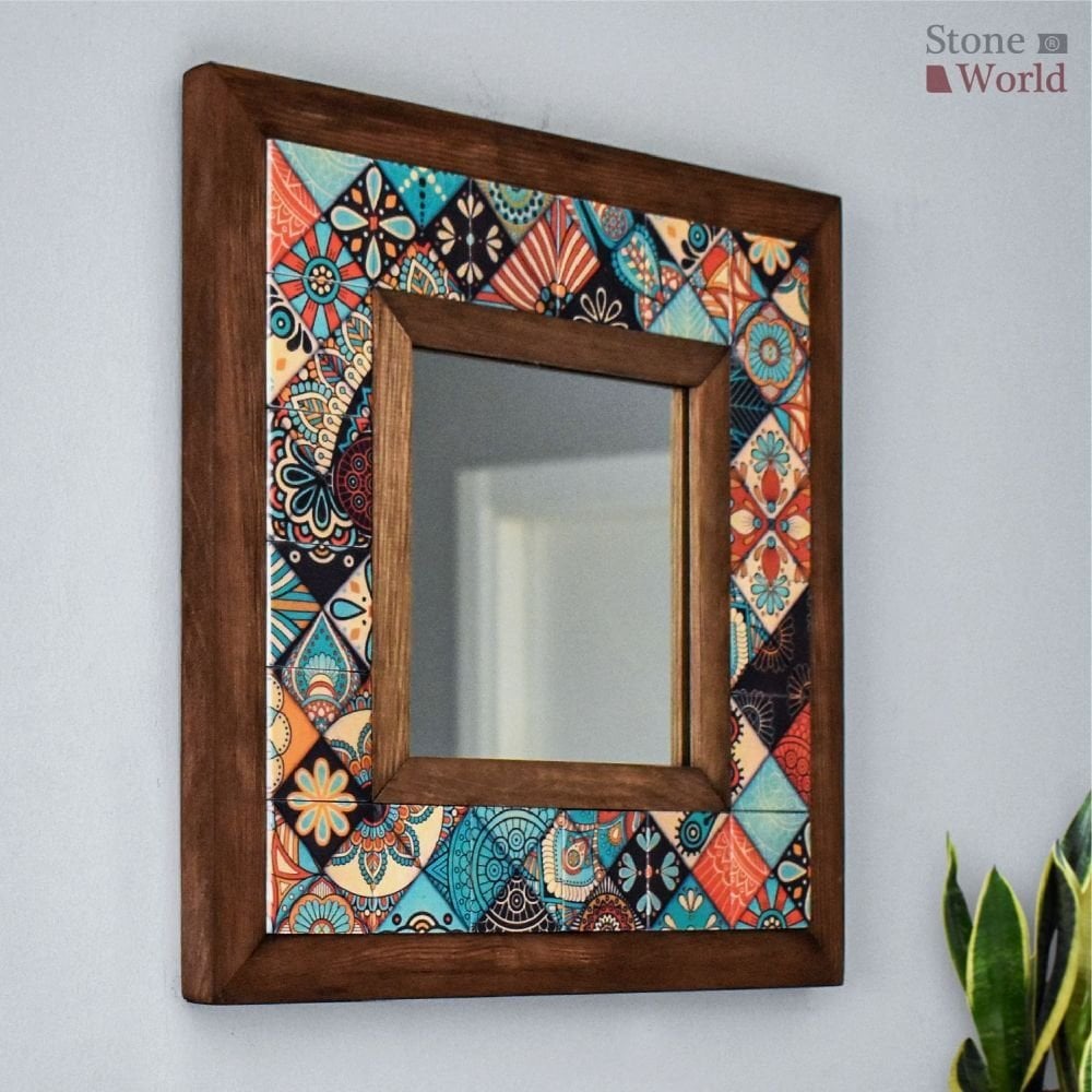 Mandala Desenli Mermer Dekoratif Ayna 34x34cm - 015.1