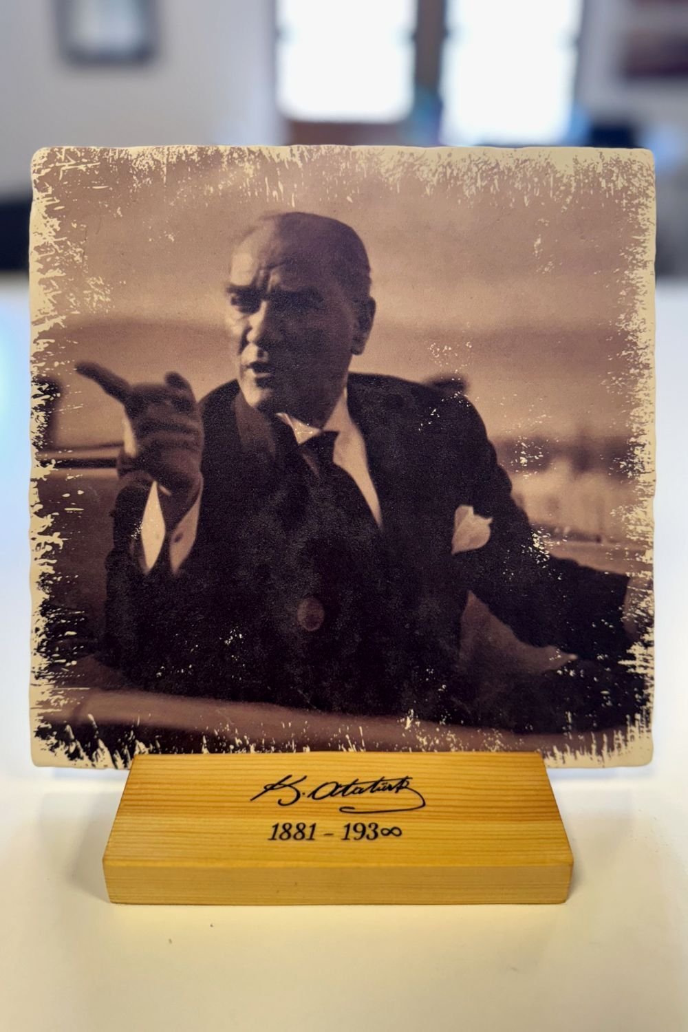 Masif Ahşap Stand & Doğal Taştan Atatürk Portresi - 003