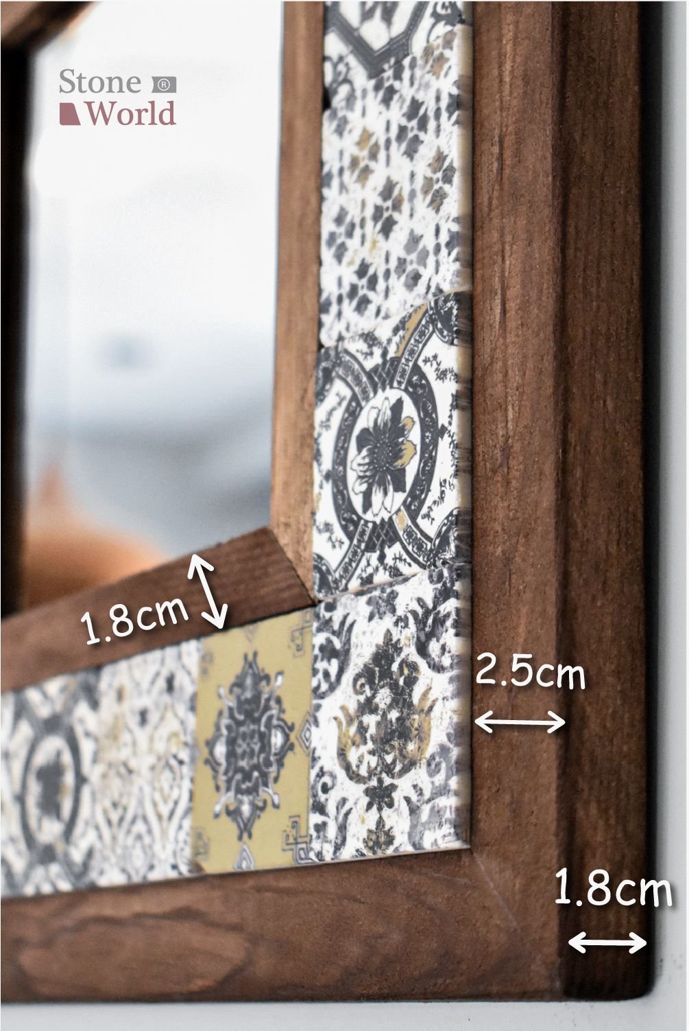 El yapımı masif ahşap ve doğal mermerden üretilen bu dekoratif duvar aynası, yaşam alanınıza zarif ve doğal bir dokunuş katar.