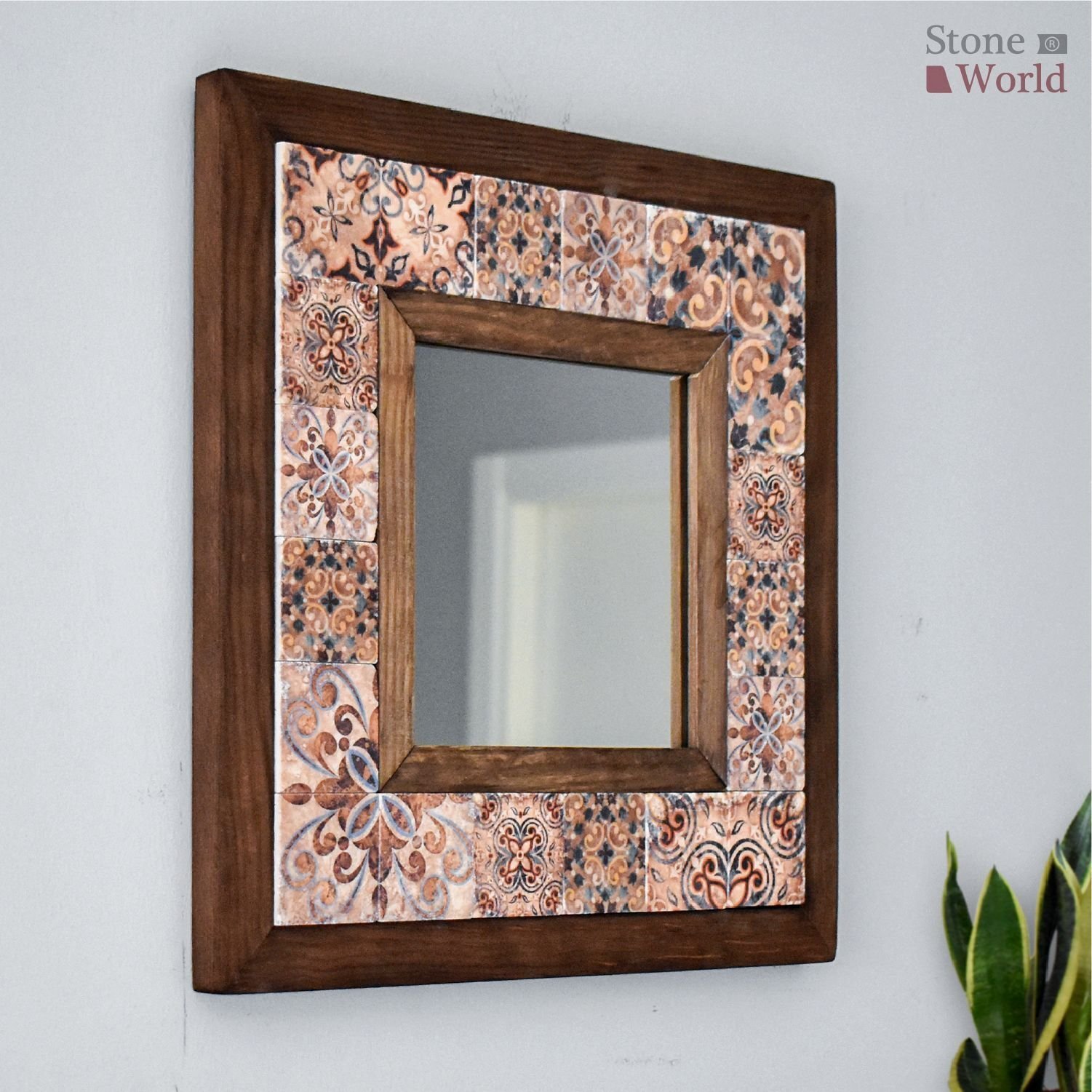Patchwork Desenli Mermer Dekoratif Ayna 34x34cm - 005.1