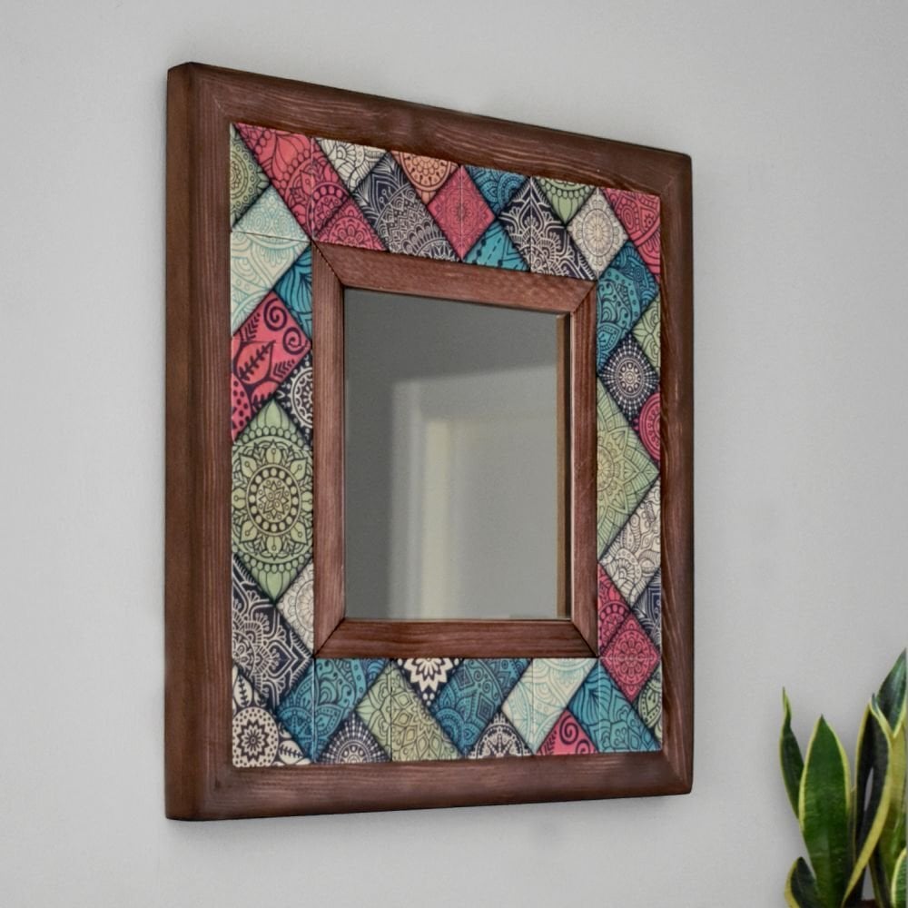 Patchwork Desenli Mermer Dekoratif Ayna 34x34cm - 023.1