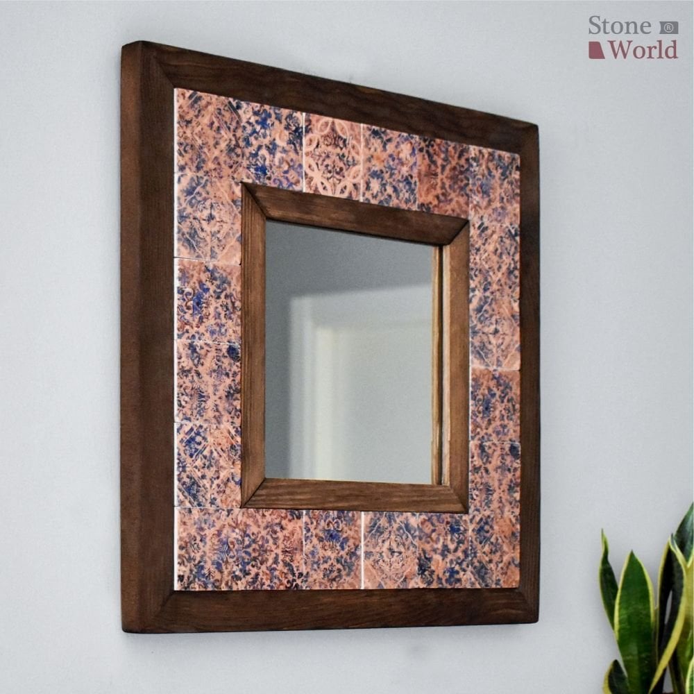Vintage Desenli Mermer Dekoratif Ayna 34x34cm - 029.1