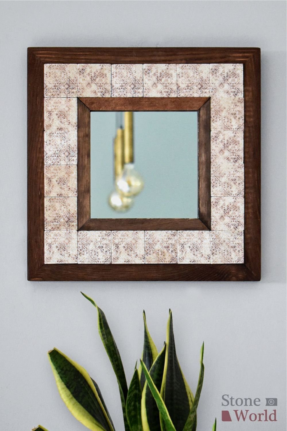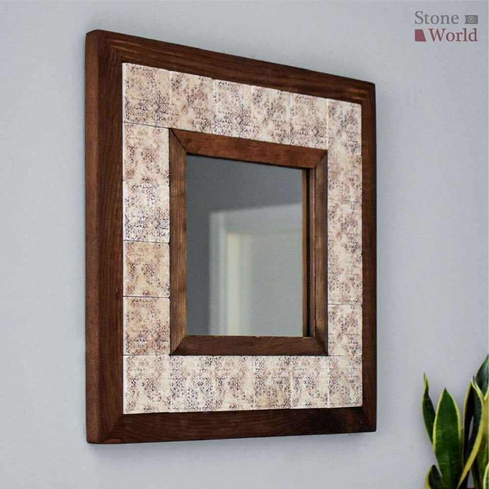 Vintage Desenli Mermer Dekoratif Ayna 34x34cm - 034.1