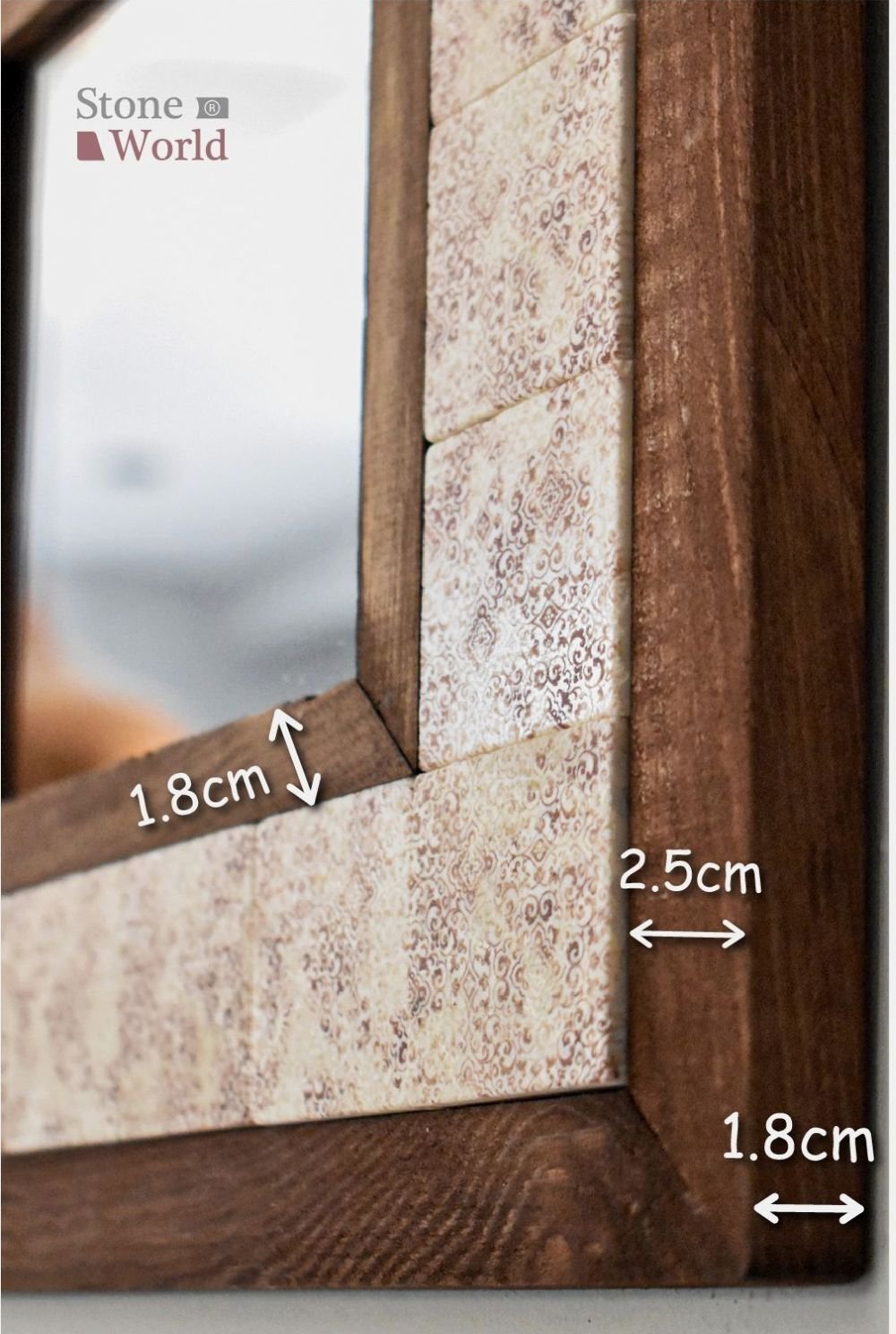 El yapımı masif ahşap ve doğal mermerden üretilen bu dekoratif duvar aynası, yaşam alanınıza zarif ve doğal bir dokunuş katar.