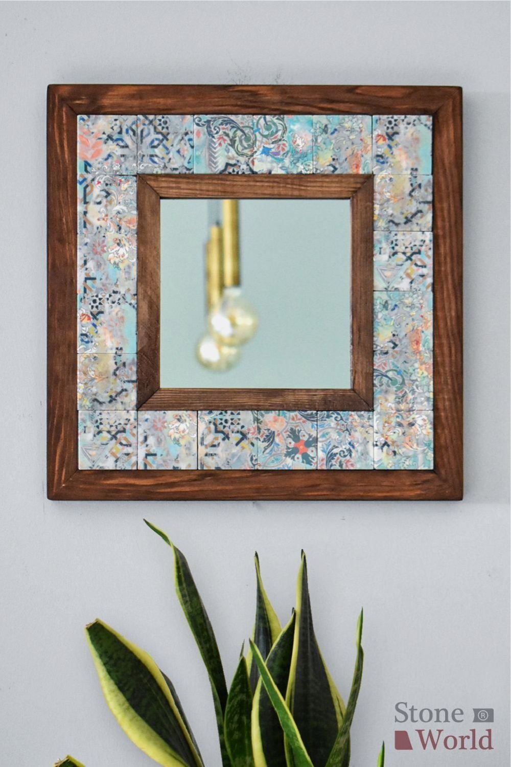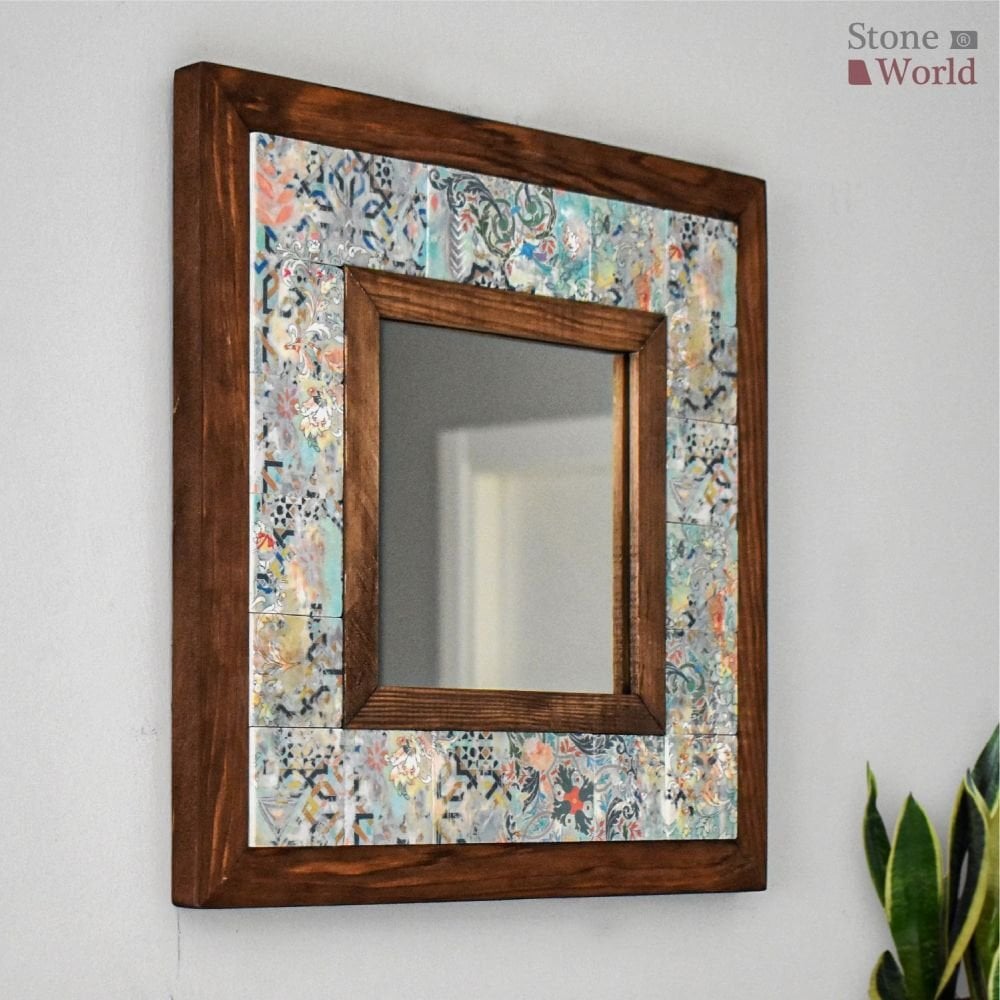 Vintage Desenli Mermer Dekoratif Ayna 34x34cm - 043.1