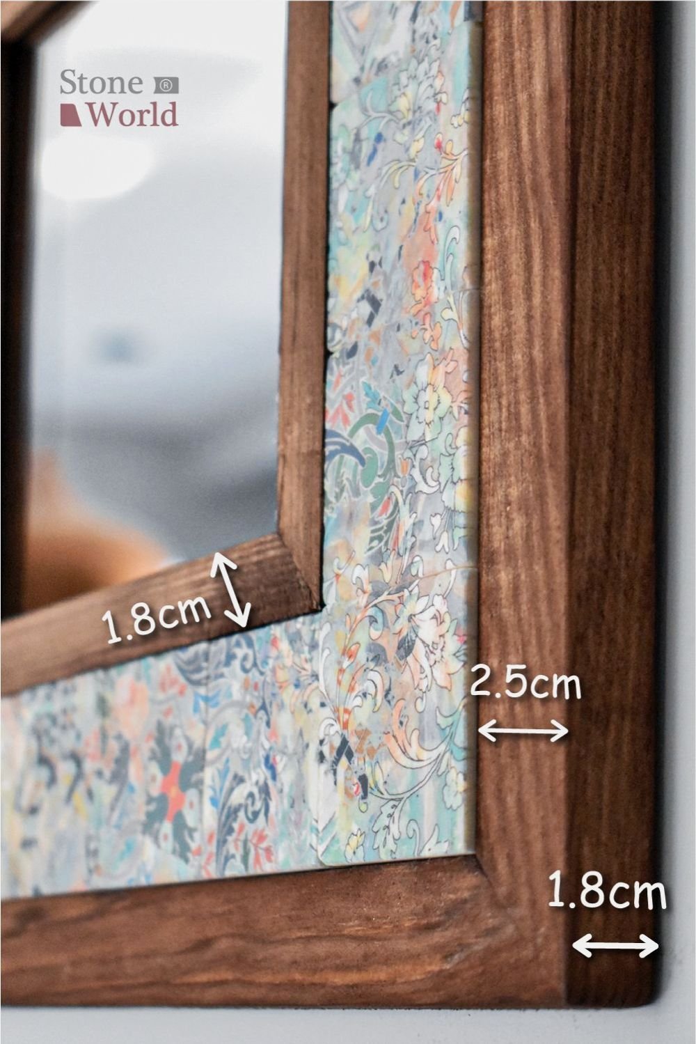 El yapımı masif ahşap ve doğal mermerden üretilen bu dekoratif duvar aynası, yaşam alanınıza zarif ve doğal bir dokunuş katar.