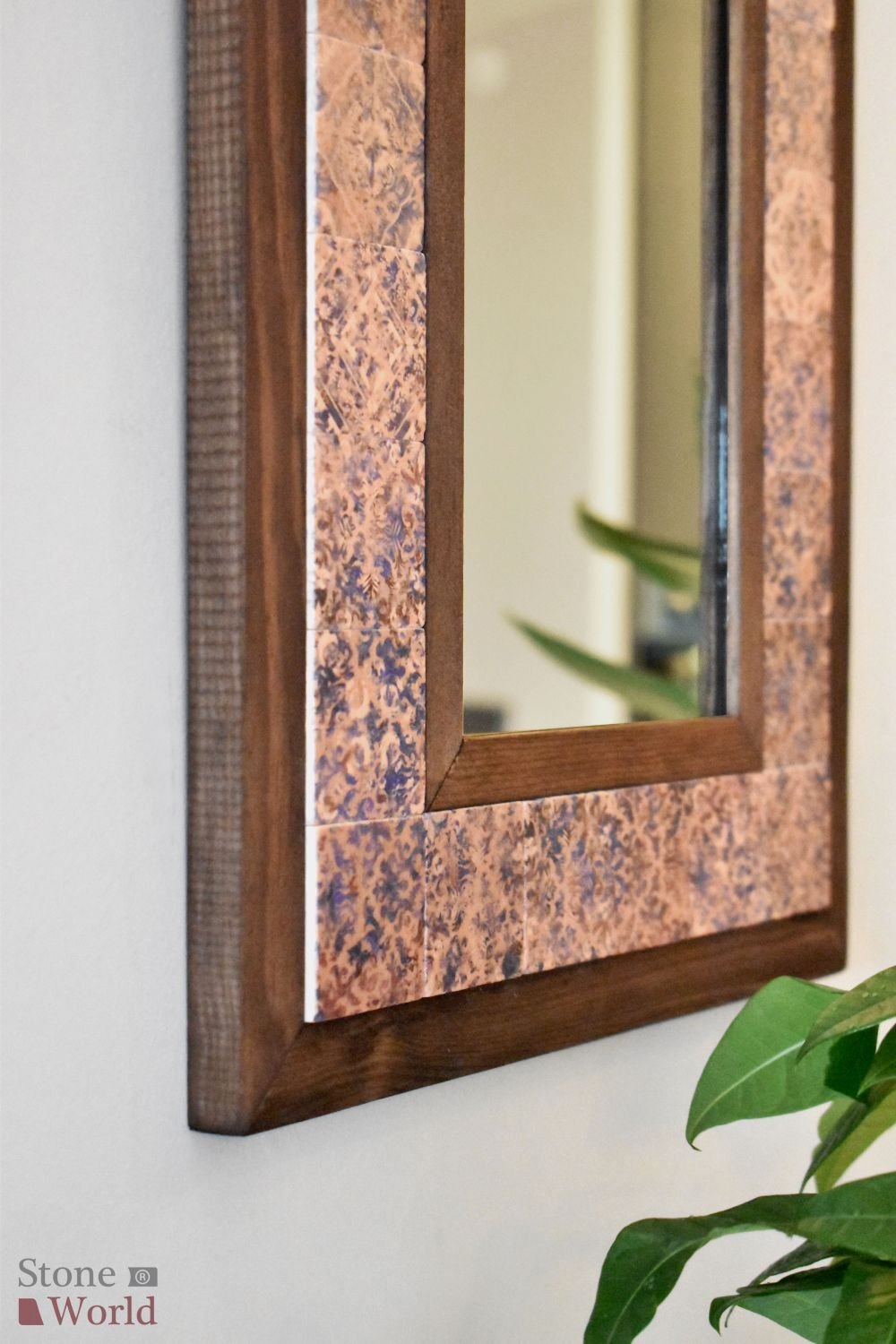 Vintage Temalı, Masif Ahşap Ve Desenli Mermerden Ayna - 34x44cm - 029.1