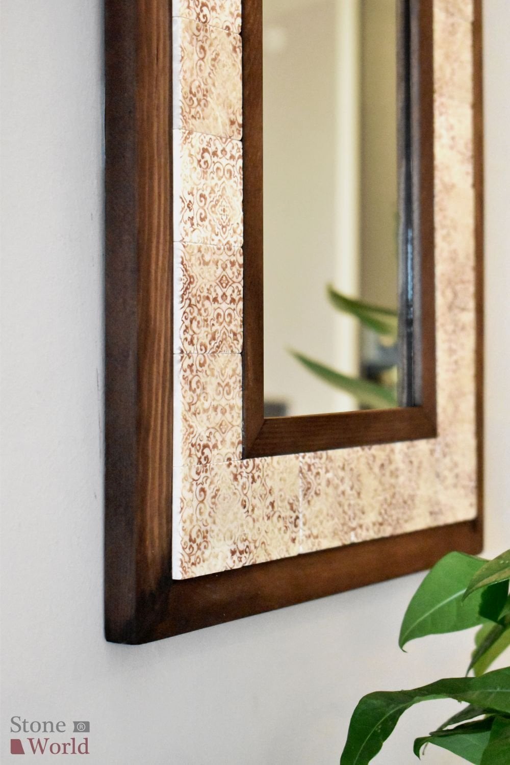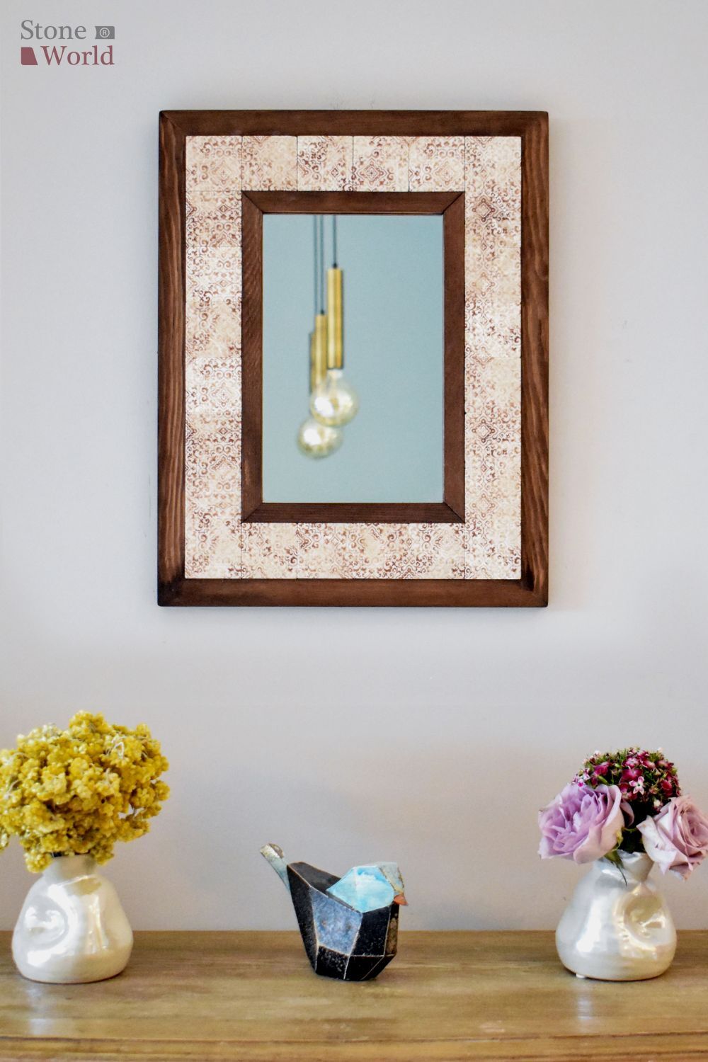 Vintage Temalı, Masif Ahşap Ve Desenli Mermerden Dekoratif Ayna - 34x44cm - 034.1